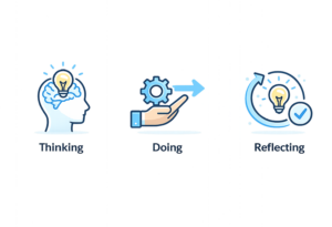 Together, these three golden threads — thinking, doing, and reflecting — create a continuous learning cycle that connects design, delivery, and the demonstration of impact.